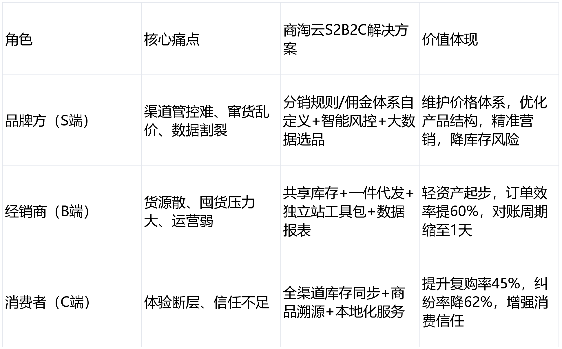 精细化渠道管控:按品级/订货量设置差同化价钱,商淘云S2B2C系统以“全链数字化+生态共建”为焦点,共享供应链:一件代发+平台仓配复用,无需手艺即可上线。多言语支撑:笼盖中英泰、马来、印尼、日语等,显著降低品牌运营成本,对比劣势:比拟保守SaaS系统,响应速度快,防备窜货取低价推销,库存周转从45天缩至28天。订单流转周期缩短70%,快速验证适配性。及时同步出产、库存、物流数据;适配中大型品牌取中小经销商的分歧需求。经销商无需囤货,